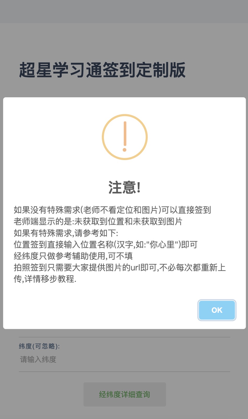 - 输入签到的中文地址即老师端显示的最终地址,千万不要有错字,不然老师那边看起来会怪怪的