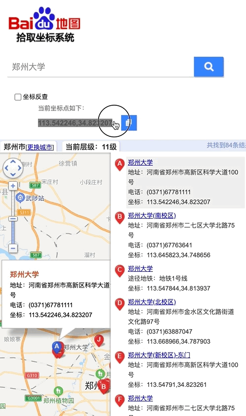 查询自己想要定位的位置的经纬度坐标,复制粘贴过来